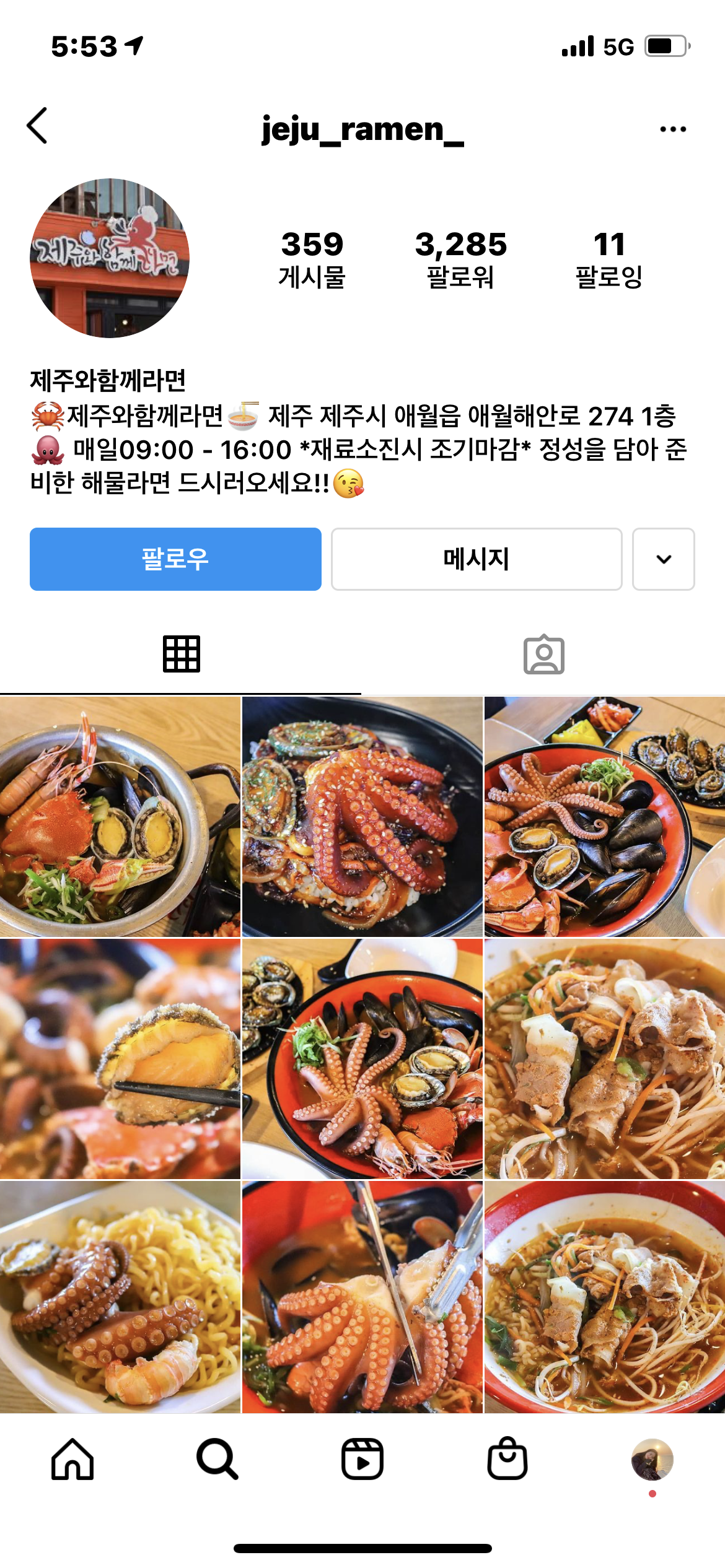 애월쪽에서 밥먹기로 했는데 이미 배는 부르고 가벼운걸 먹고싶어서 검색하다가 해물라면집을 찾았다!
