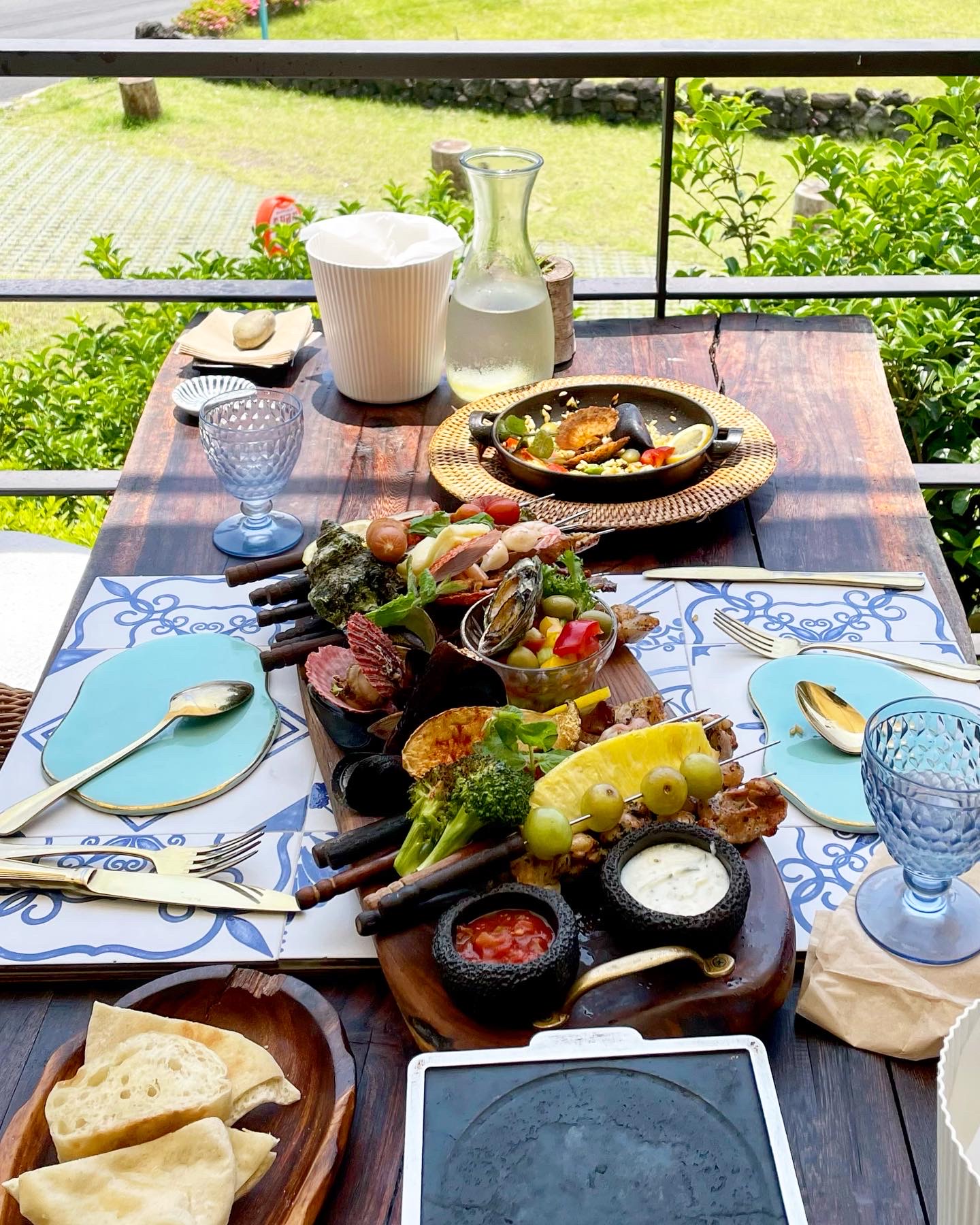 제주도 수블라키와 다양한 딥쏘스, 각종 해산물과 튀김, 꾸스꾸스, 샐러드, 그릴문어, 기로스, 구운야채 등 다양한 유러피안 음식을 즐길 수 있는 지중해식 플래터